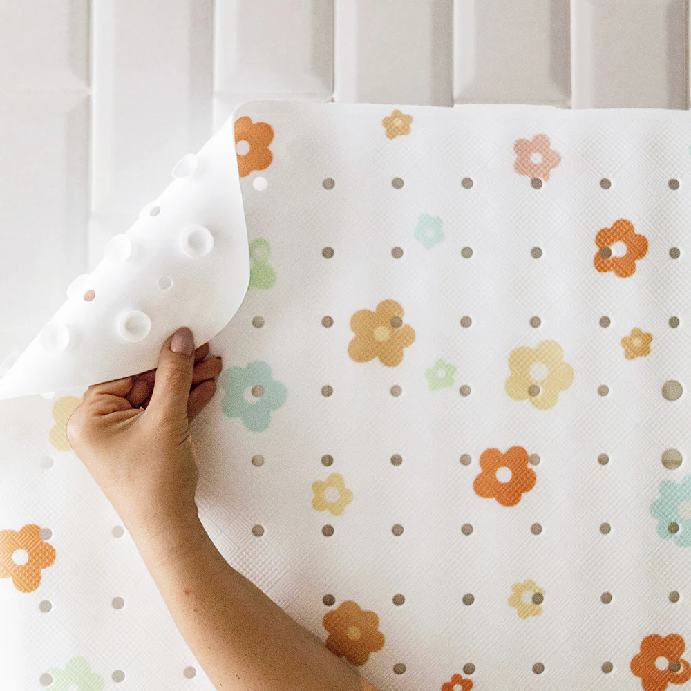 Apportez une touche de gaité à l'heure du bain avec ce tapis de bain antidérapant fleurs 🌸 de la marque Tapilou !